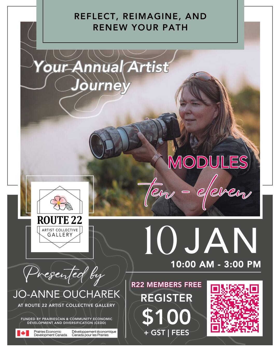 Join Jo-Anne Oucharek for CEDD Modules 10-11 for a full-day workshop designed to invite artists to pause, reflect, and chart their path forward in a way that feels inspiring and creative!