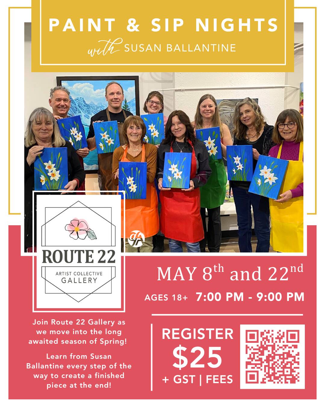 Springtime Paint & Sip Night with Susan Ballantine Join us for an evening of some Springtime painting with Susan and leave with a finished piece! No experience is necessary and…