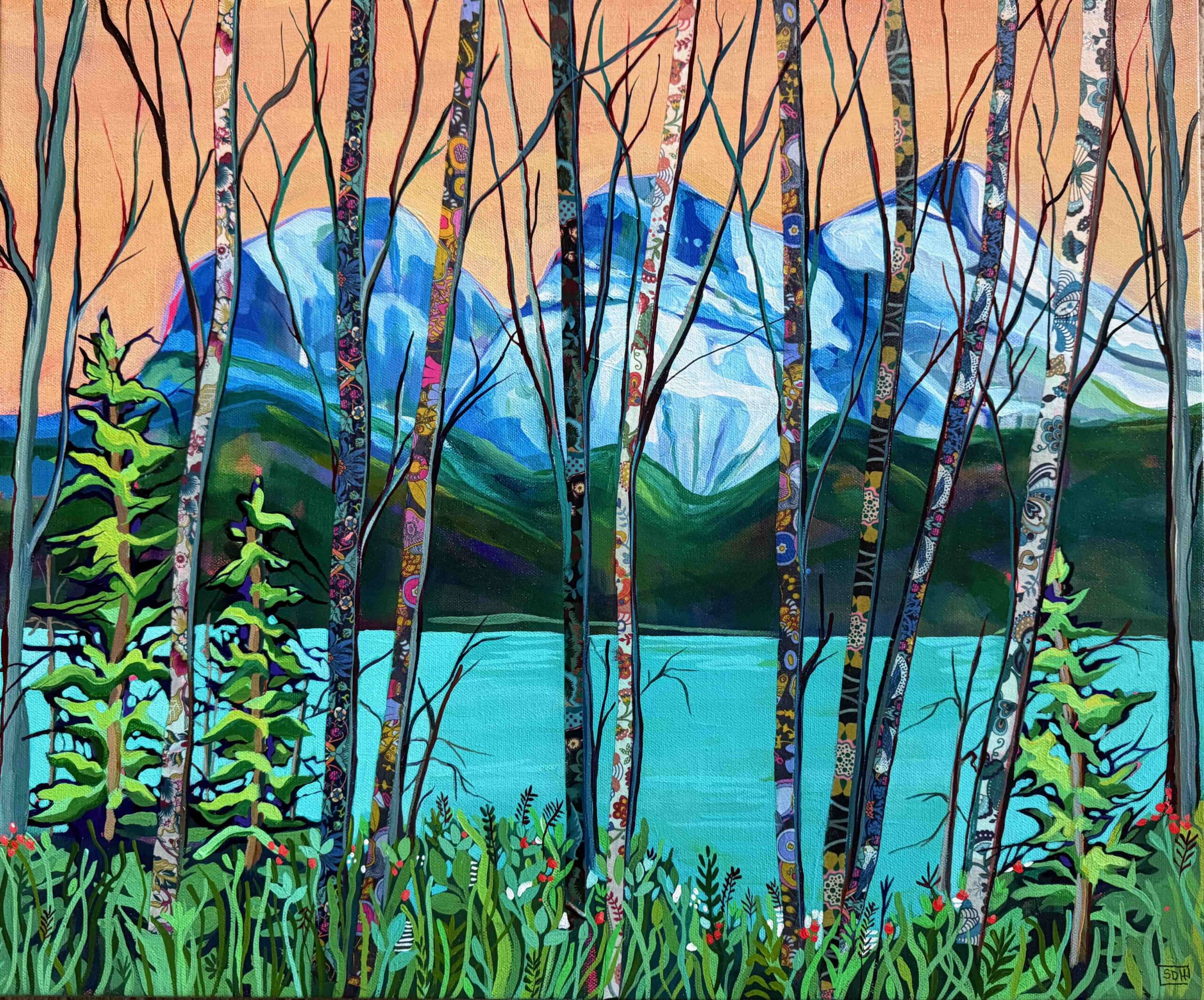 Shirley Hauck weaves her love of fabric inter her paintings creating works that blend texture, depth and emotion. For many years she was an art quilter and textile artist receiving both local and international recognition for her innovative designs. After leaving the corporate world, Shirley turned her creative energy toward painting where her background in textiles continues to influence her approach to colour, layering and composition.