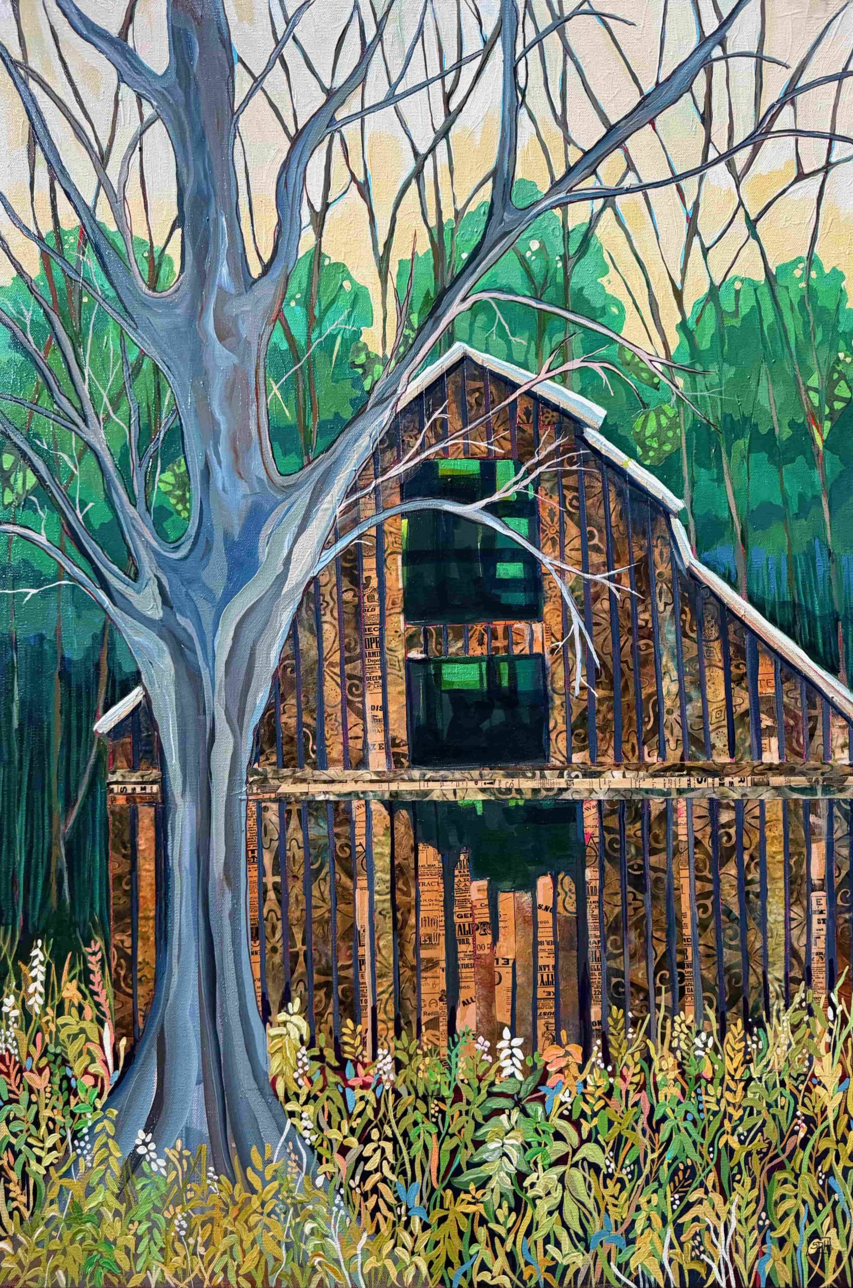 Living in the foothills of Alberta she draws inspiration not only from her deep connection to the land but also from the abundance and richness of the surrounding landscape – its structures, textures & natural fauna. Her paintings invite viewers to pause and look closer.